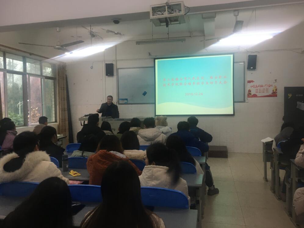 为贯彻落实学院医教协同发展,促进学院与雅安市人民医院合作培养临床医学专业学生项目有序运转,12月24日,临床医学院在育才路校区实验楼208召开联合培养临床医学专业学生动员大会。临床医学院(附属医院)副院长杨志伟、教务干事胥崟菘、辅导员张晓惜和临床医学专业18级6班34名学生参加会议。