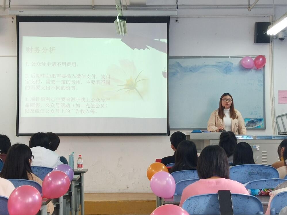 大赛在图附204教室拉开帷幕。经前期宣传、报名、初选,共八个参赛团队进入决赛。各参赛选手和团队通过制作策划书、PPT演讲、现场答辩、VCR展示等多种方式展示了他们创新思路和创业计划。他们对创业的激情、对生活的关注热爱和解决问题的奇思妙想赢得了场下评委和观众的阵阵掌声。其中第五组参赛团队的“全自助厨房”主题小店,源于生活的创意给人耳目一新的感觉。第七组参赛团队的“冰激淋蛋糕店”也令人惊艳。评委老师的点评犀利到位、直击症结,为各参赛团队提供了有针对性的意见建议,达到了有效的思维碰撞。