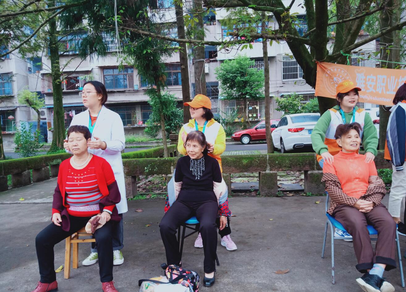 活动前,短暂的会议让志愿者们明确自己的工作,了解活动流程及意义。活动中,宣传组在社区周边发放医保法宣传单及防骗宣传单、讲解防诈骗小知识、让更多的社区居民知道此次义诊活动;义诊组为居民提供测量血压、血糖服务的同时也为社区居民宣传健康小知识,生活小建议;推拿组在进行推拿按摩服务时,贴心和社区居民拉家常,同时普及颈椎病、肩周炎的防范措施,居民倍感亲切,志愿服务受到社区居民的好评和赞誉。