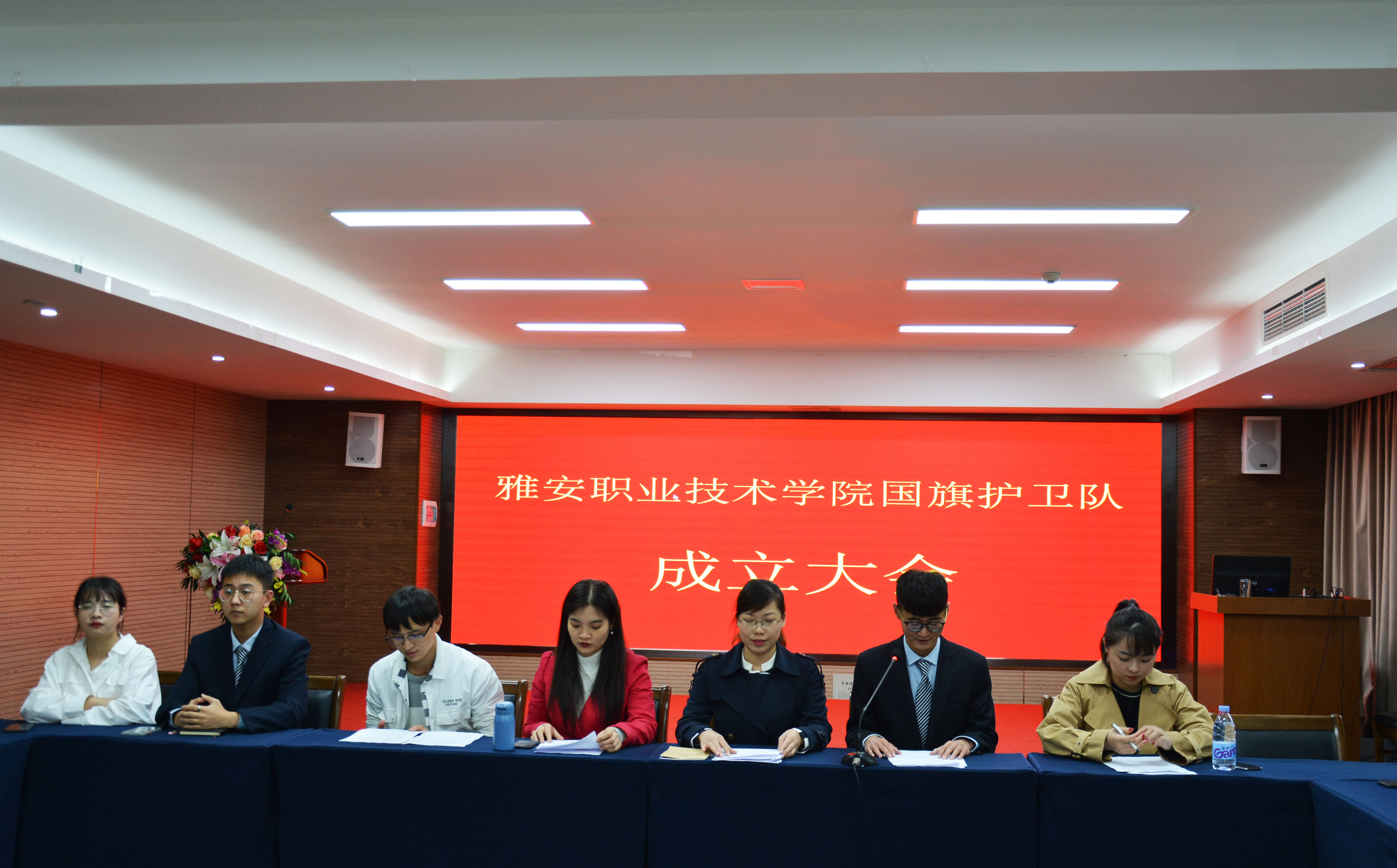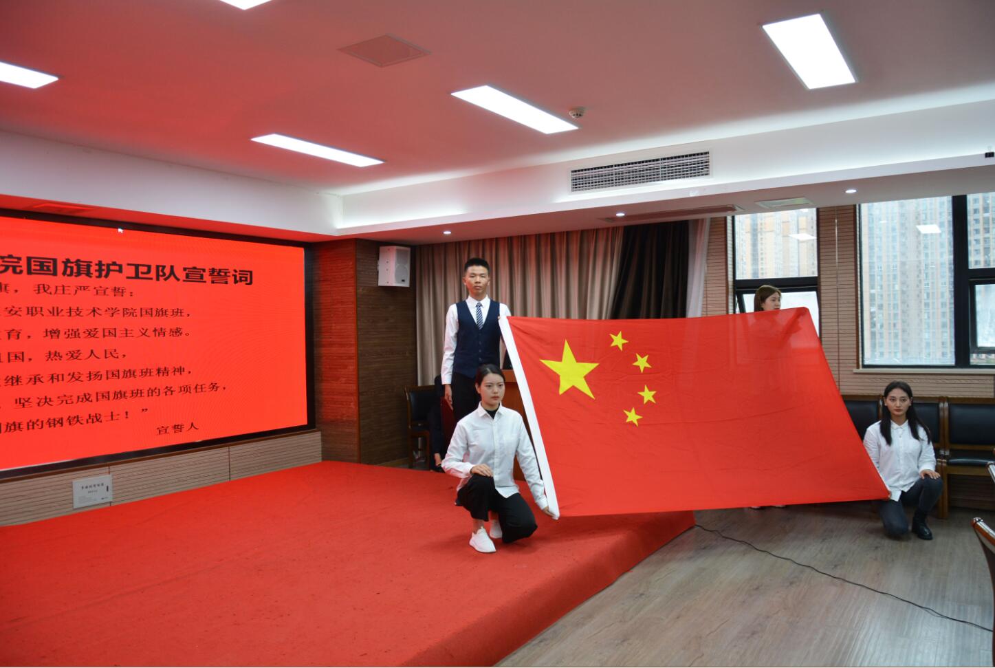 红红爱国心,浓浓国旗情。10月10日下午,院团委在青年路校区培训楼集雅厅举行学院国旗护卫队成立大会。院团委书记刘永恩、院团委副书记郭庆、院团委全体教师、院学生会代表及42名国旗护卫队成员参加大会。
