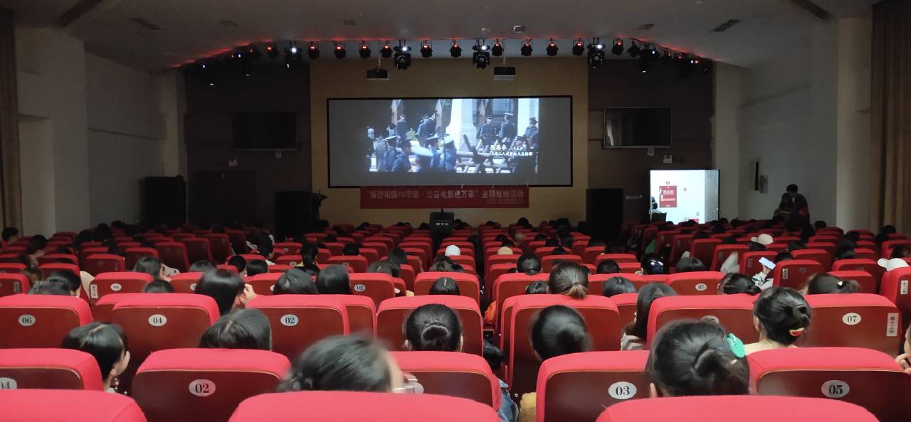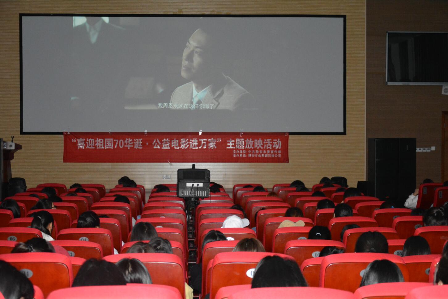 喜迎祖国母亲华诞七十周年,弘扬中华民族红色精神, 9月23日,由中共雅安市委宣传部主办,beat365在线唯一官网协办的“喜迎祖国七十华诞•公益电影进万家”爱国主义电影百校巡演活动在学院青年路校区实训楼二楼多功能厅举行,学院120名优秀学生代表参与观看。