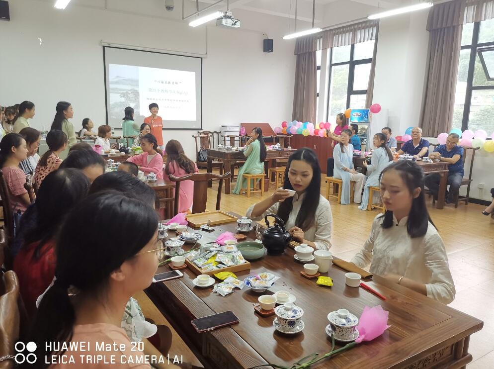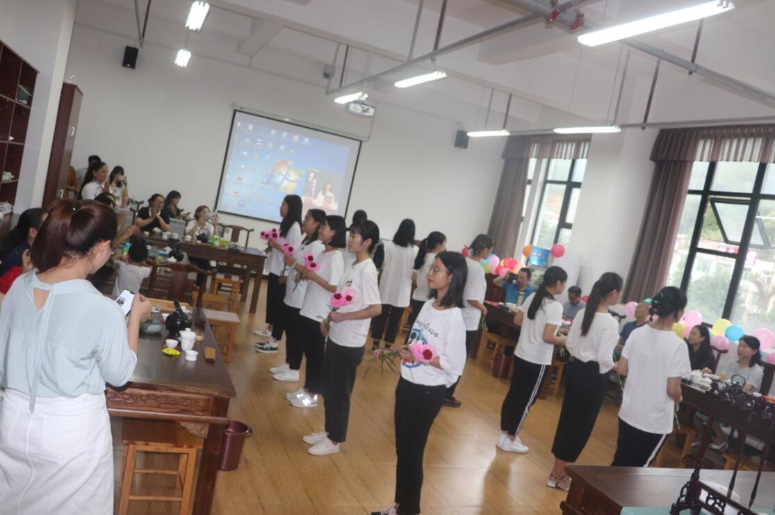 活动中,茶艺与茶叶营销专业的同学们为全体老师献上了远播国际的文式茶艺、长嘴壶茶艺表演;会计班的同学献上了诗朗诵《会计实训室》。该诗是2016年,由会计专业副教授余家学老师,围绕中国会计发展史、雅职院财会专业发展情况所著,此次搬上了教师节庆祝活动的现场;旅游专业同学们献上了深情合唱《当我轻轻走过你的窗前》,动情的演唱感染了在场的每一位老师。演唱结束,同学们为所有老师献上了鲜花康乃馨,祝愿老师幸福安康。此次活动,最隆重的“以传统国茶敬爱师”环节,同学们请每一位老师上座,并向他们敬上了一杯暖暖的中国茶。老师们眼中噙着感动的泪水,欣慰地饮下了这杯敬师茶。随后,会计专业李自钢副教授为活动题字“桃李满天下”;曹瑜老师献上了即兴舞蹈《鸿雁》;钟锦黎老师演唱了一曲《父亲的草原母亲的河》,将活动推向了一个又一个高潮。