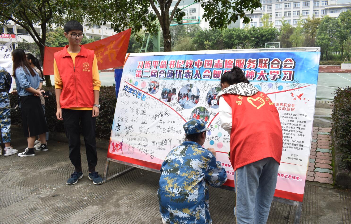 为深入学习领会习近平总书记贺信精神的丰富内涵。9月6日,“习近平总书记致中国志愿服务联合会第二届会员代表大会贺信”精神大学习签名活动在学院青年路校区食堂门口举行。