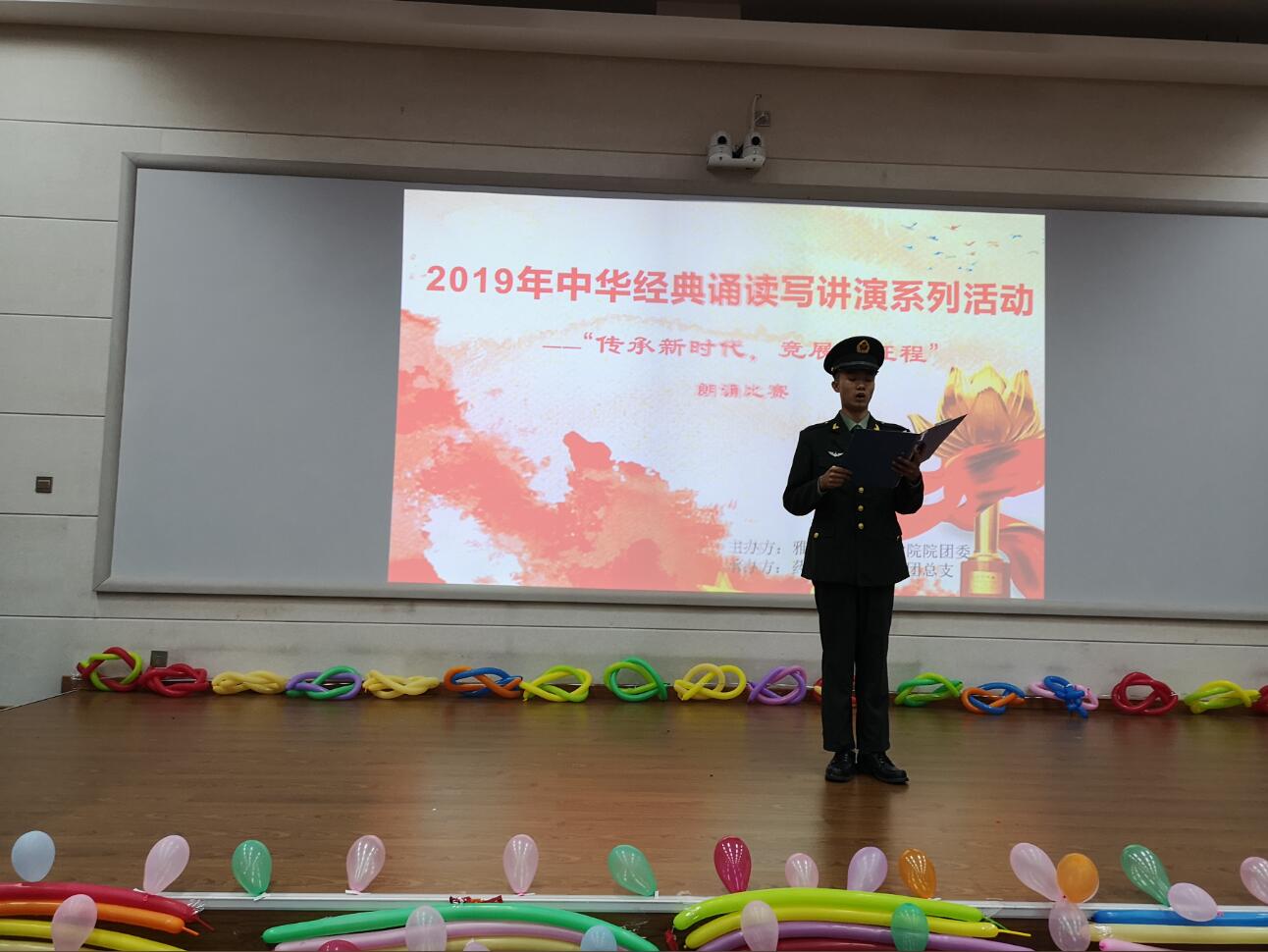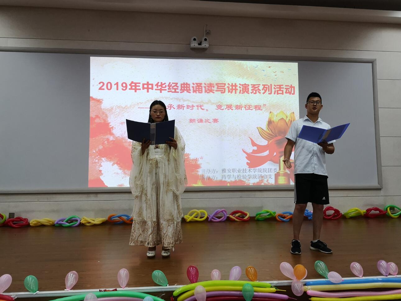 为庆祝新中国成立70周年,五四爱国运动100周年,引导同学们共抒爱国情怀,传承经典美德,展示新时代青年的良好精神面貌,6月20日,药学与检验学院承办的学院2019年中华经典诵读写讲演系列活动之“传承新时代,竞展新征程”朗诵比赛在实训与服务中心2204多媒体教室举行。药检学院党总支书记杨泽刚、团总支书记鲜敏及辅导员老师、学生代表共100余人参加了比赛。
