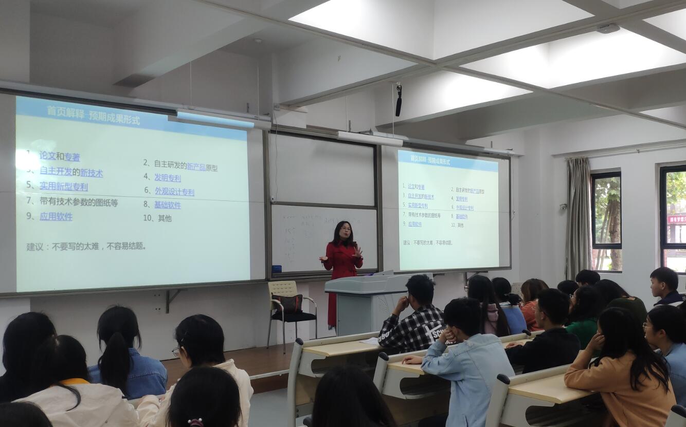 本次讲座中,李明蓉老师用生动的讲解、亲切的互动,案例的分析,将枯燥的申报内容变得生动有趣,正如苏轼所言“横看成岭侧成峰,远近高低各不同”,通过灵活变通,画龙点睛,让同学们积极参与到讲座中,加强了讲座的效果。