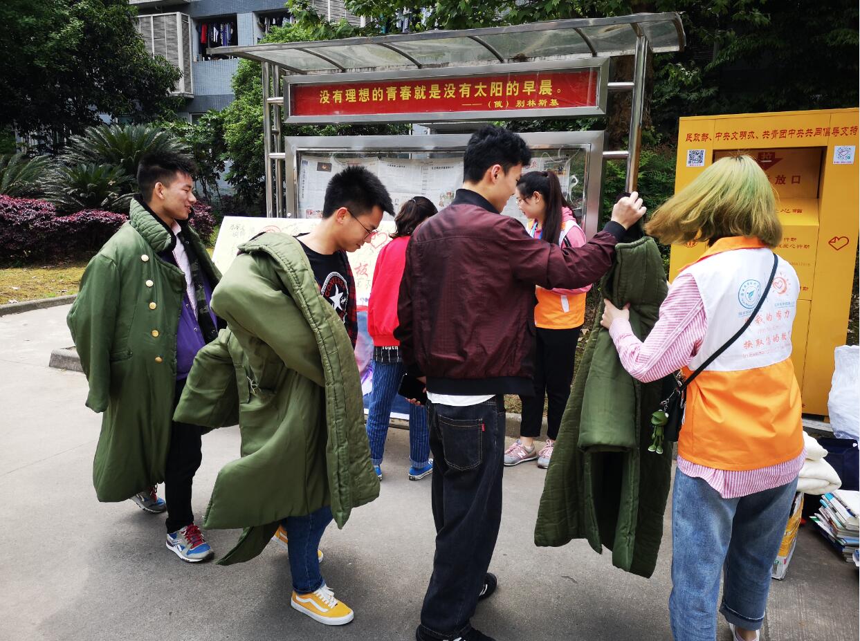 活动开始,志愿者用精彩的歌舞表演吸引到不少同学参加到捐赠活动中,学院院长石静更是莅临现场指导。同学们积极地将自己闲置的书籍和废旧衣物投放到“爱心屋”,在签名墙上留言。志愿者对所捐物品进行登记造册,向同学们介绍一张纸献爱心行动的具体举措。