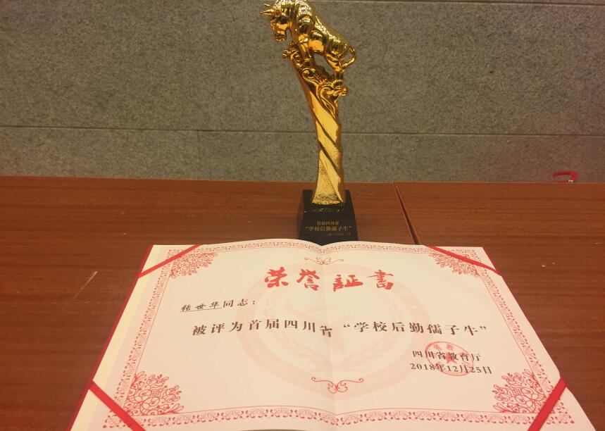 根据《四川省教育厅关于开展“学校后勤孺子牛”推送活动的通知》要求,全省教育系统于3至12月广泛开展了“学校后勤孺子牛”推颂活动,我院后勤管理处张世华老师通过层层推送、逐级遴选、网络投票、专家评审和公示,获得了首届四川省“学校后勤孺子牛”荣誉称号并接受了表彰,这既是对我院后勤工作的肯定与激励,同时也展现了我院后勤员工“甘为后勤孺子牛 服务教育新时代”的精神风貌。
