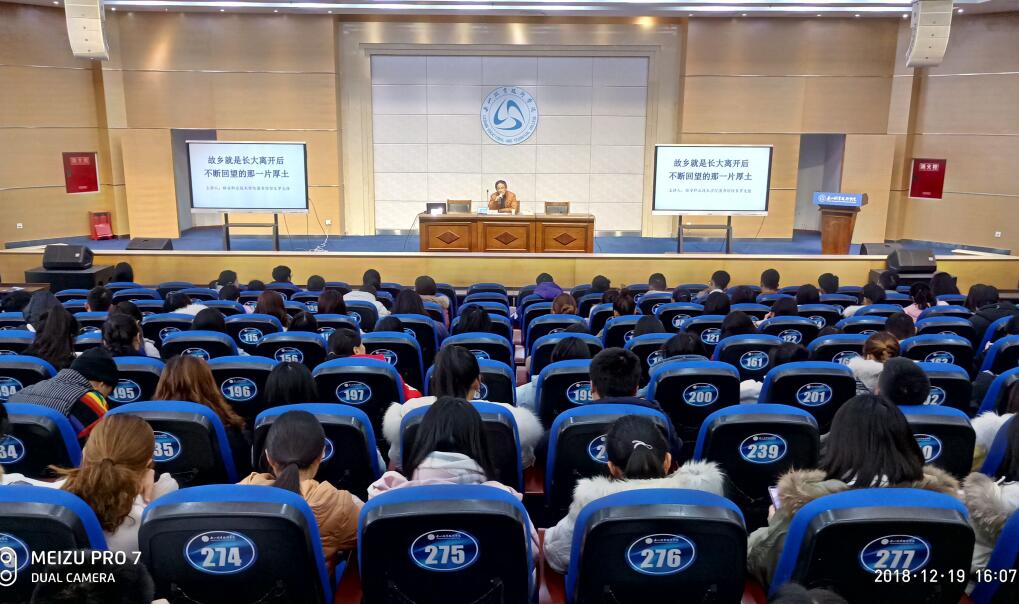 【本网讯】12月19日下午,beat365在线唯一官网图书馆馆长罗大佺应邀到乐山职业技术学院开展了主题为《故乡,就是长大离开后不断回望的那一片厚土》文学讲座。乐山职业技术学院文学社团及系部学生400多人参加聆听。