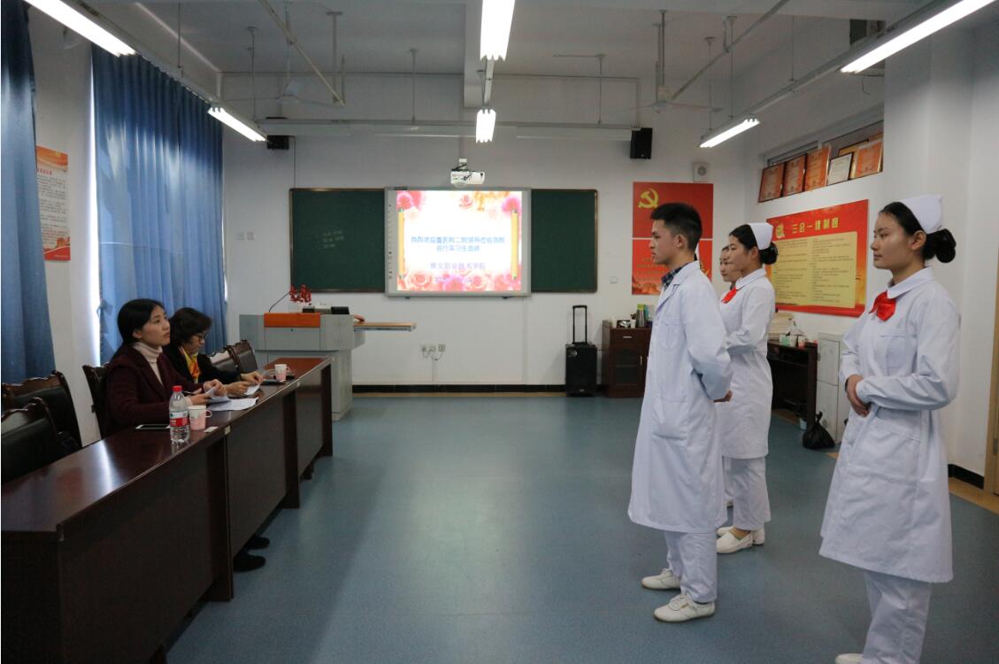 【本网讯】11月21日下午,重庆医科大学附属第二医院护理部副主任罗玲和王娇老师来我院选拔实习生,面试地点设在青年路校区实训楼607,共有104名学生参加面试。