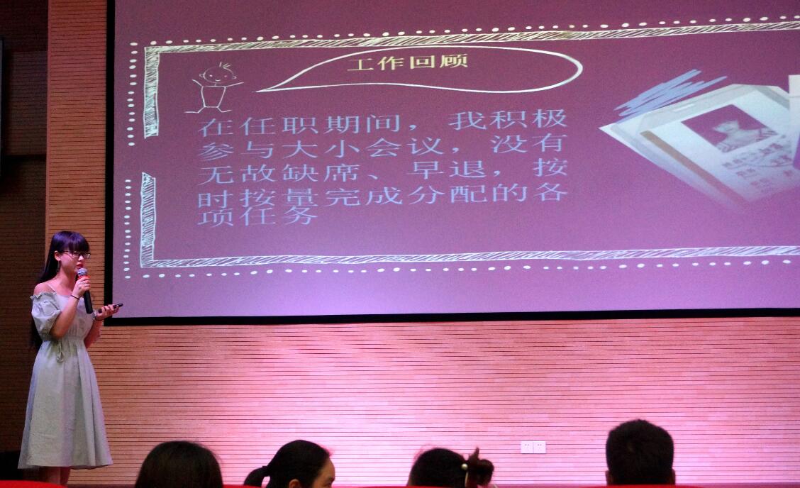 【本网讯】为充分发挥学生会自我教育、自我管理、自我服务、自我监督的职能,推进团学工作持续有效的开展,6月5日,2018届团委学生会换届选举大会在青年路校区举行,院团委老师和院学生会各部门负责人参加了本次活动。