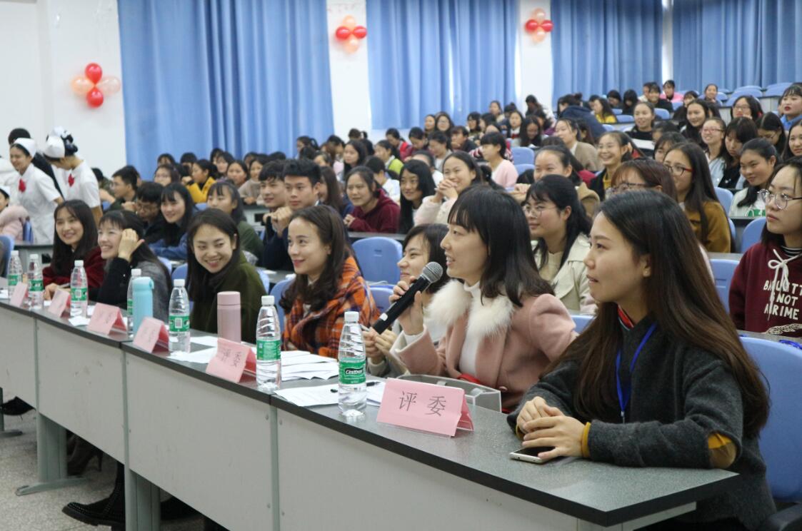 【本网讯】10月31日下午,护理系第四届“南丁格尔”杯护士风采大赛启动仪式暨主持人大赛决赛在图书综合楼阶梯教室101举行。系主任王静,团总支书记万黎、副书记吴玉阳,教师王菠等以及100余名学生代表参加了活动。