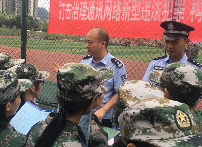 【本网讯】9月19日上午,由雅安市人民检察院、雅安市公安局、雅安市人民银行、雨城区检察院、雨城区公安分局和青江派出所主办,学院保卫处、学生处协办的关于打击通讯诈骗的宣传活动在青年路校区足球场举行。此次宣传活动是以国家网络安全宣传周活动为契机,对目前常见的通讯诈骗手法,向广大师生进行宣传,以达到防范通讯网络违法犯罪的目的。