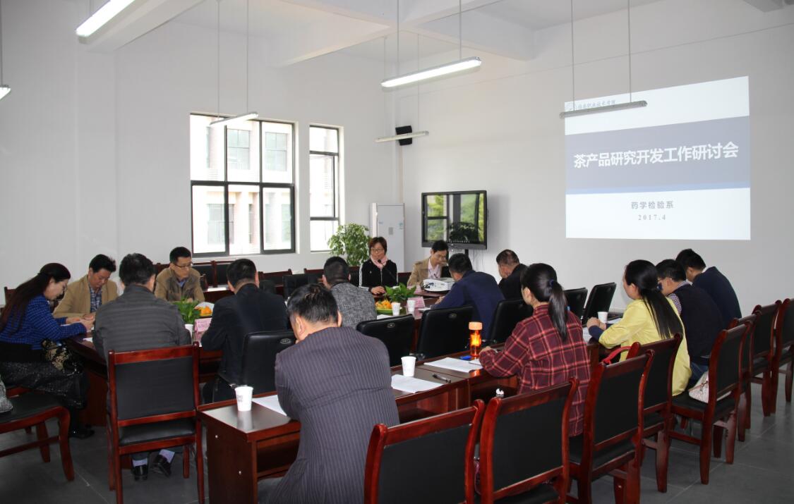 【本网讯】4月21日,2017年产学研合作暨实习就业工作研讨会药学检验系分组讨论会在药检系经开区校区系部会议室隆重举行,本次会议以“茶产品研究开发”为主题,邀请了四川雅安周公山茶业有限公司、雅安市和龙茶业有限公司、四川吉祥茶业有限公司、雅安茶厂股份有限公司、中国茶叶流通协会、四川蒙顶山跃华茶叶集团有限公司、四川禹贡蒙顶茶叶集团有限公司、雅安市食品药品检验所、雅安市食品药品监督管理局、雅安市农产品检测中心等单位专家领导共同讨论,群策群力,针对本地企业需求及学校现状与未来发展提出建议,共商校企合作新模式和新思路。
