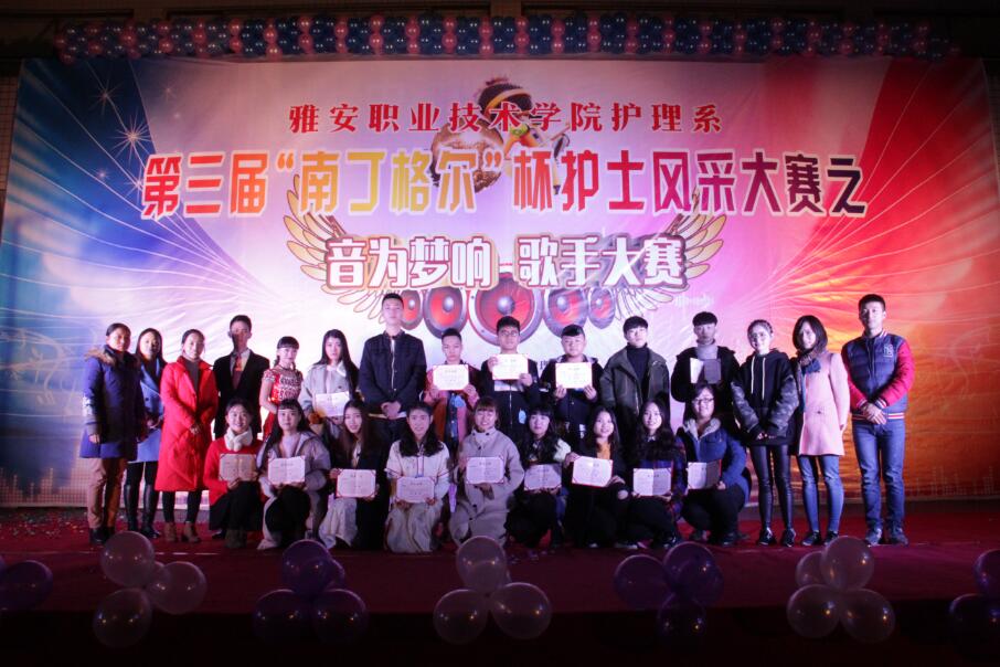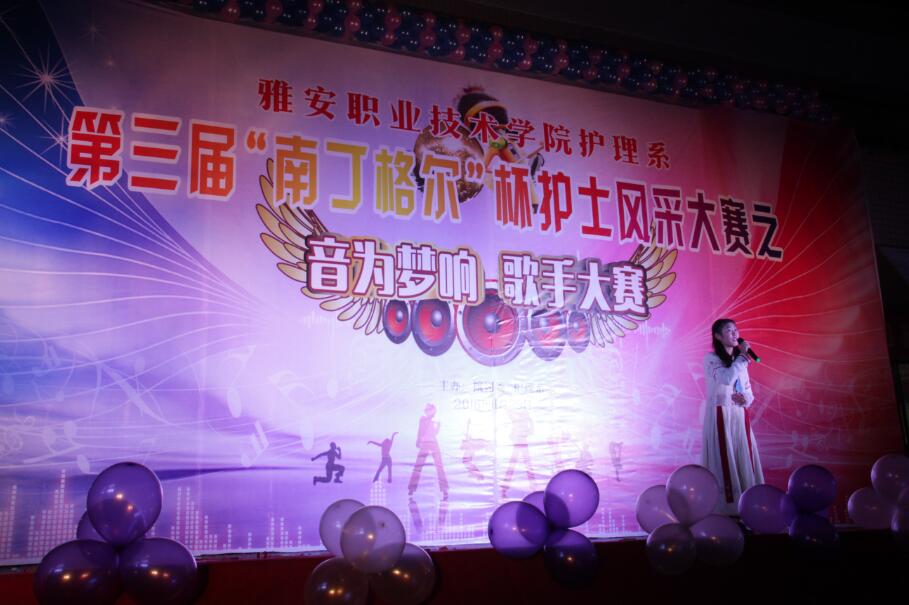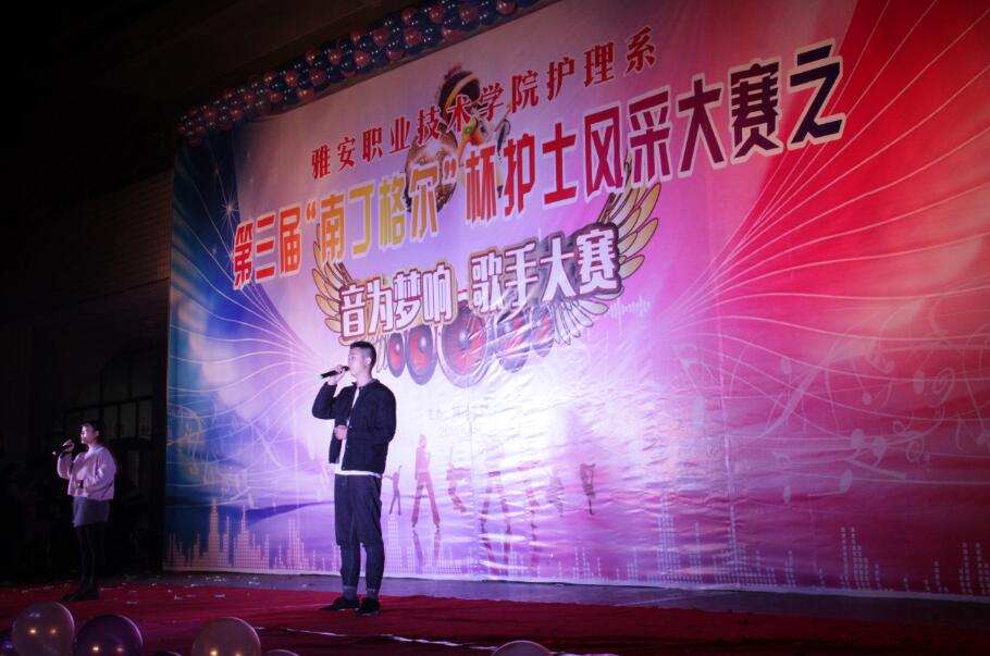 【本网讯】冬意渐浓,歌声悠扬。11月29日晚上六点,护理系第三届“南丁格尔”杯护士风采大赛之“音为梦想,歌手大赛”决赛在食堂门口拉开帷幕。护理系党支部副书记李敏、院团委教师王昌宇及护理系团总支书记万黎、团总支副书记吴玉阳、辅导员老师饶玲出席本次大赛并担任评委,同时上一届歌手大赛冠军刘丽君受邀担任特邀评委。学院各学生组织负责人及各系学生分会主席团代表应邀作为大众评审。