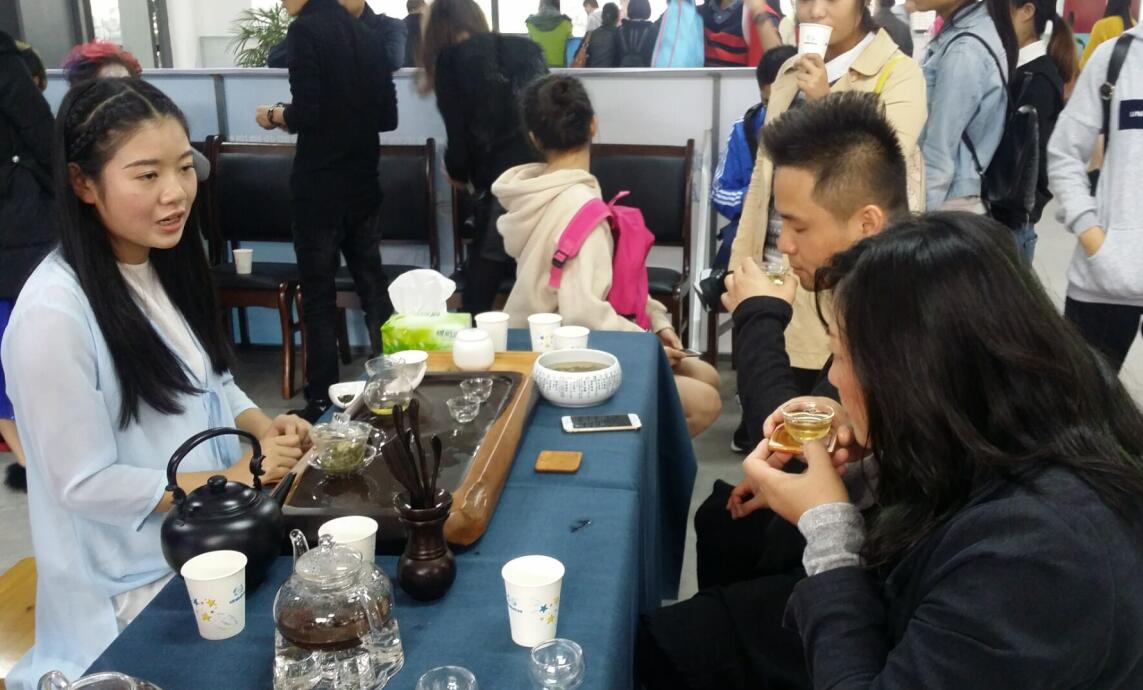 陆羽西、黄丹等4名茶艺社同学按照大会主办方的要求,在“发型技术”比赛场地的外围设置了观摩嘉宾服务站。按照大会的要求,旅经系师生向观摩嘉宾和参赛选手准备了蒙顶黄芽和雅安藏茶。会议期间,同学们向来宾展示了茶艺的同时,向来宾介绍了雅安的悠久的茶文化历史,累计提供茶水服务500余人次。以“专业、热情、周到、安全”的精神面貌展示了我院学生的专业素养。