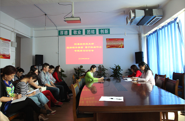 【本网讯】9月6日下午,附属医院党支部在行政办公楼301会议室召开“坚持根本宗旨,勇于担当作为”专题学习讨论会。会议由党支部书记祝继英主持,附属医院党支部全体党员和行政人员参加此次会议。