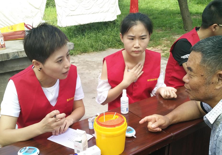 【本网讯】7月15-16日,护理系团支部书记万黎老师和郭建梅、向岚、任冬梅三位党员教师带领“南丁格尔”志愿服务队的志愿者们来到汉碑路社区开展暑期“三下乡”之“义诊进社区,活动暖人心”健康知识宣教和“居家环境安全性评估”的居家护理志愿服务活动,以提高社区居民对自身健康的关注,做到疾病的早发现、早治疗。