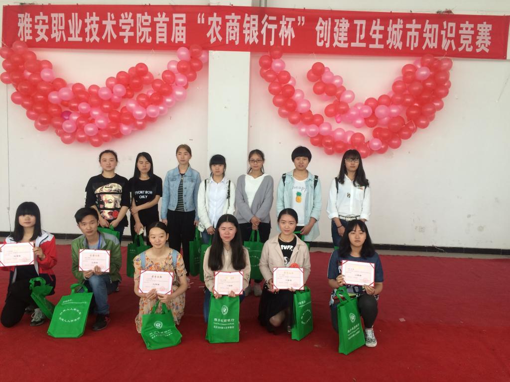 【本网讯】为积极响应雅安市创建省级文明城市的号召,5月28日上午,由院学生会主办,院学习部、演讲与主持协会承办的首届“农商银行杯”创建卫生城市知识竞赛在实训楼圆弧大厅举行。院团委组织部部长高川程老师、药检系团总支书记鲜敏老师、院学生会主席耿涛、副主席李思阳担任评委。