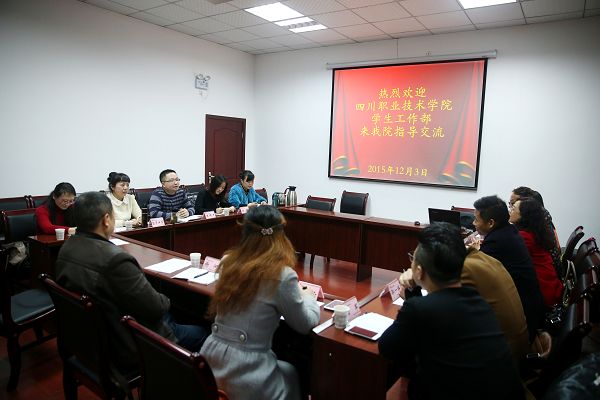 【本网讯】12月3日下午,四川职业技术学院学生工作部一行8人在张亮部长的带领下来院考察交流。我院学生工作部部长王伟才,副部长吕罗伊莎、任敏及其他部门同志参加了此次考察交流。