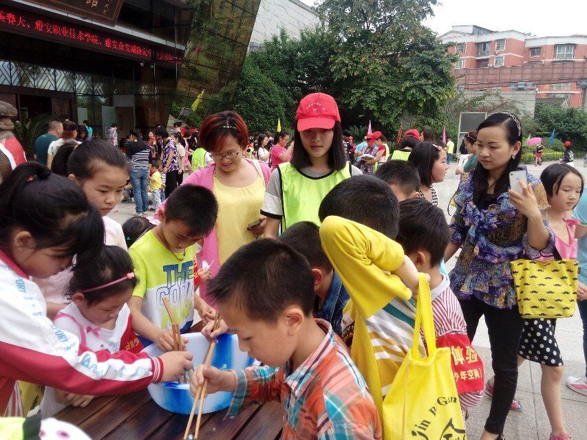 当天,沐浴着初夏的阳光,伴随着欢快的歌声,医学系青志协20名学生志愿者认真负责地组织小朋友们参加到历史知识趣味问答、吹乒乓球、丢乒乓球到盆、蒙眼摸福、夹玻璃球、套圈、绑腿跑、趣味保龄球、踢毽子、吹气球等10个活动中来,现场处处洋溢着欢乐气氛。