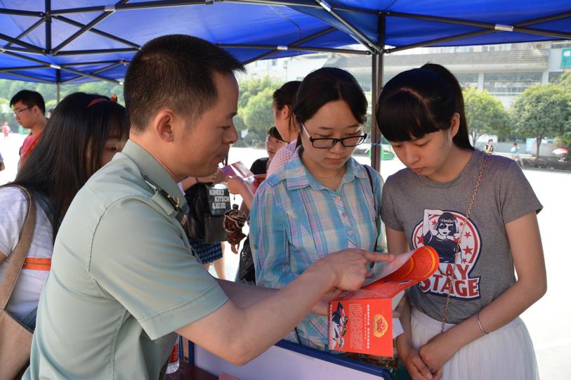 雨城区武装部政委张洪、副部长李洪、市政府征兵办公室工作人员及学院武装部征兵工作负责人为同学们详细讲解了大学生应征入伍的相关政策和报名预征方法,学院志愿者向前来咨询的同学发放了征兵工作相关资料,收到良好效果。