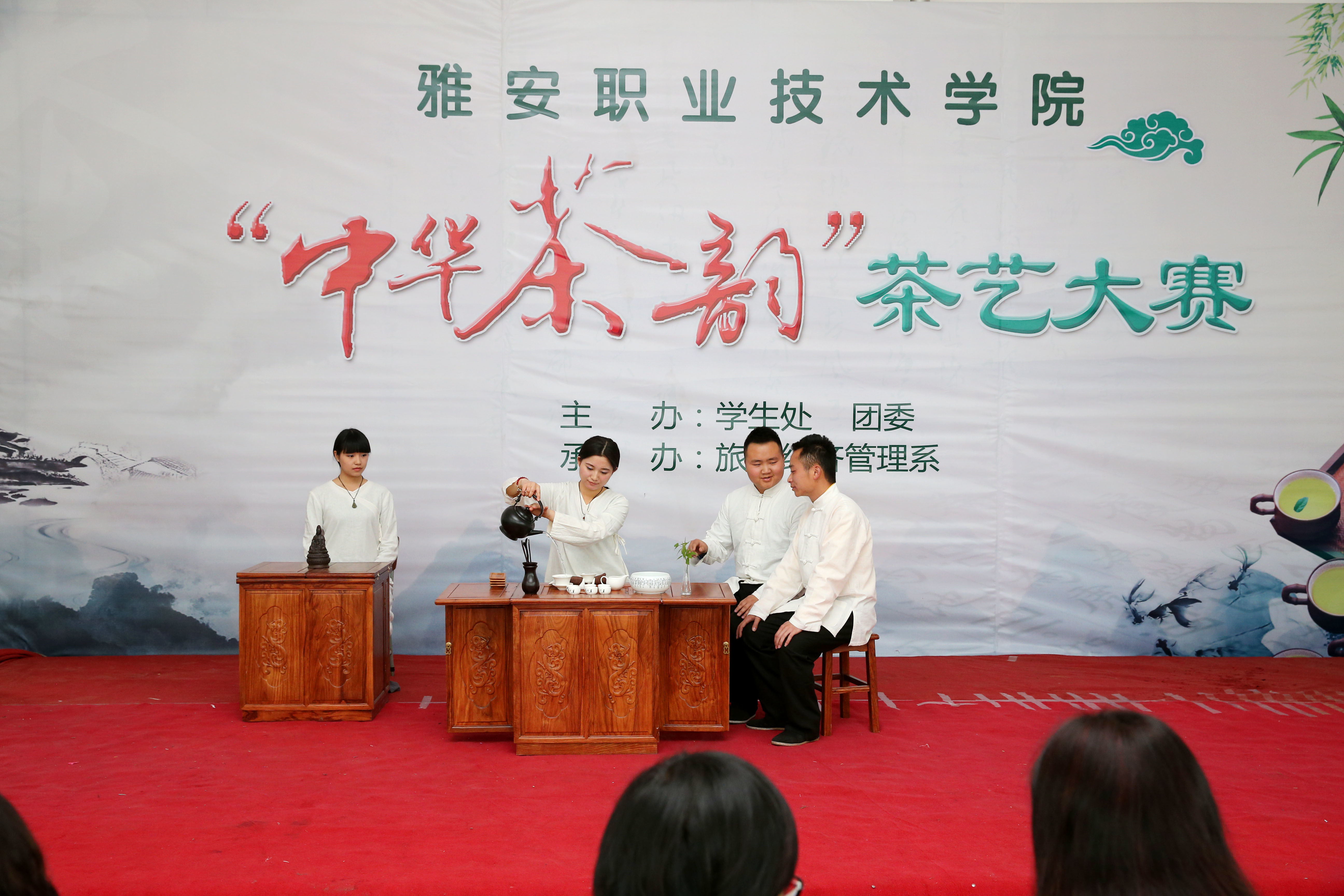 4月7日,由学生会、团委主办,旅经系承办的“职业教育活动周—中华茶韵茶艺大赛”在青年路校区实训楼举行。四川省茶叶流通协会副会长陈书谦,市旅游局田文敏、苏亚萍等3位嘉宾受邀来院担当校外评委,提升了大赛规格。院长石静、学生处处长王伟才及各系负责人出席比赛现场。