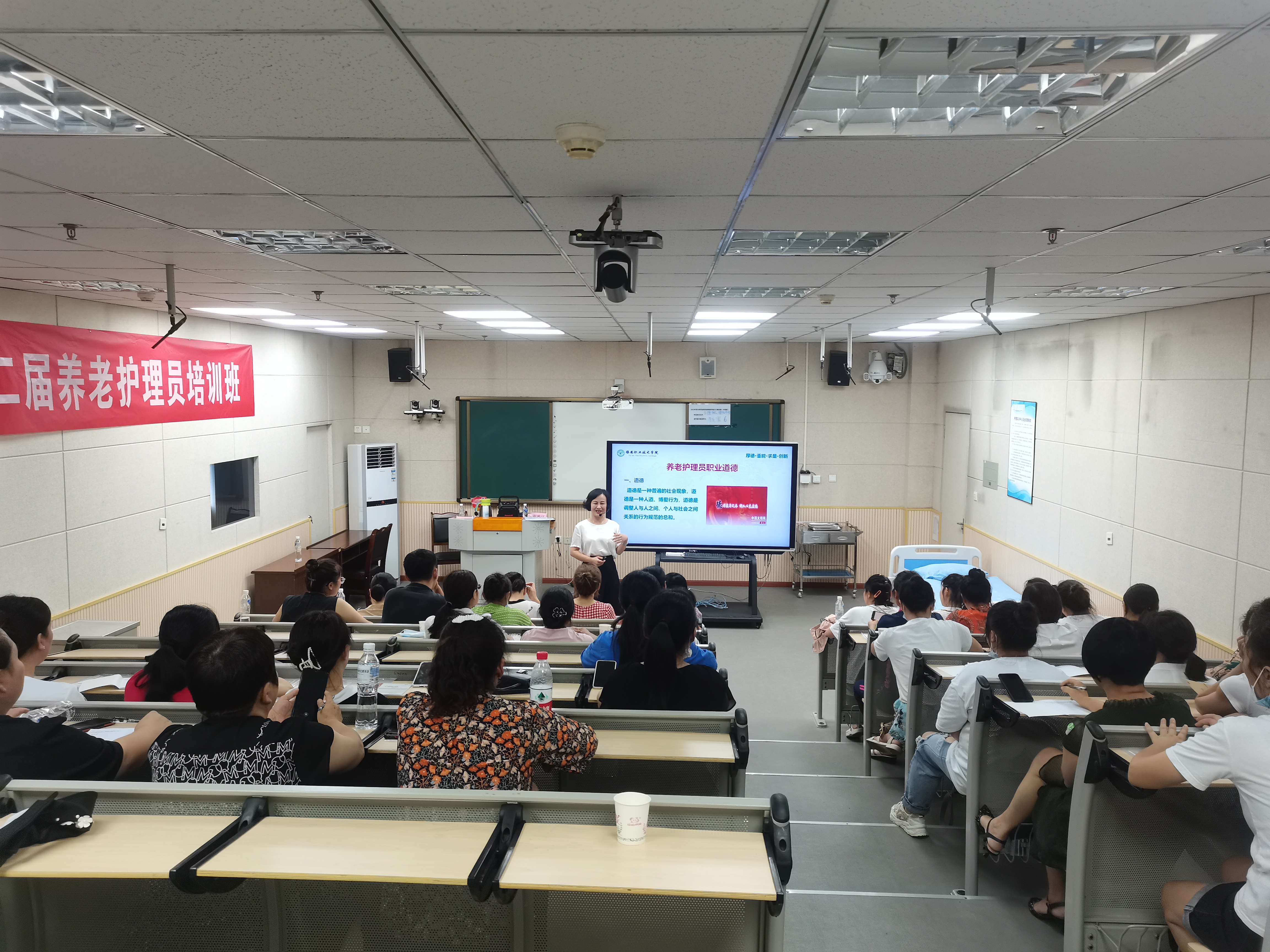 为深入贯彻习近平总书记关于提高养老院服务质量的重要指示精神,持续深化养老院服务质量专项行动,全面提升我市养老服务机构管护人员能力水平,8月22日—27日由雅安市民政局、雅安市人力资源和社会保障局举办,beat365在线唯一官网承办的雅安市第二届养老管护人员培训在我院护理学院实训大楼举行。