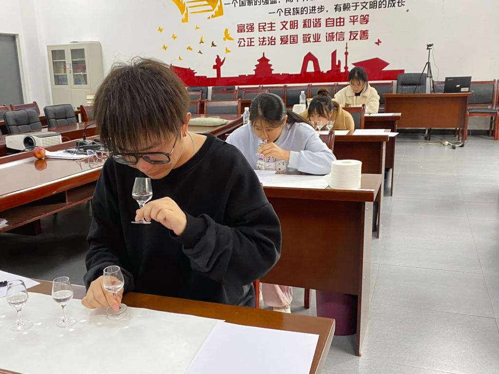 本次白酒品评技能大赛,精准对接了省赛的赛项流程、大赛任务、比赛环境等要求,设置了理论考试和技能实操两个部分,其中技能实操包括了酒度差、浓香质量差、酱香质量差、年份差、白酒香型鉴别与重现五个环节。经过初赛、复赛的角逐,共有20名选手脱颖而出,入围本次决赛赛场。20名选手在角逐决赛荣誉的同时,也提前熟悉了省赛的流程和要求,达到了“以赛练兵”的目的。