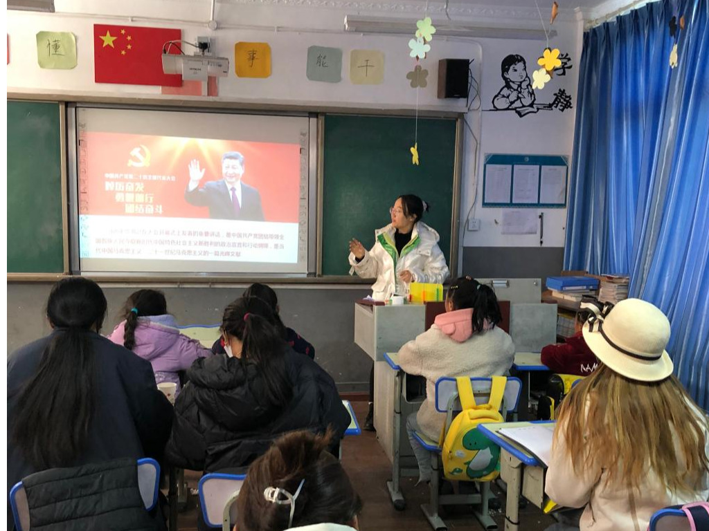 在祝桑乡小学,黄君华从深刻把握党的二十大的主题和系列成果,深刻领悟“两个确立”的决定性意义,坚决做到“两个维护”,以中国式现代化引领经济社会实践,结合实际做好乡村振兴等方面进行了深入系统的阐释。闫国彬结合国内国际形势,阐述了党的二十大的伟大意义。两位老师党课主题鲜明、重点突出、内涵丰富,为祝桑乡小学师生深入理解和准确把握党的二十大精神提供了有力指导。