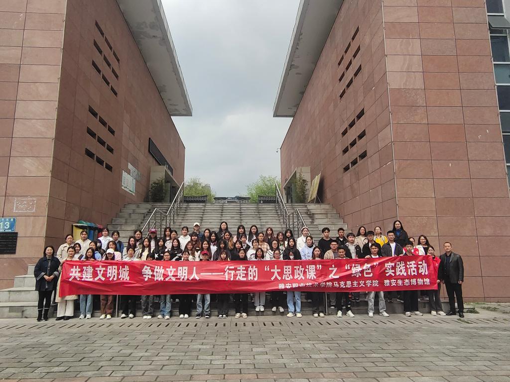 马克思主义学院深入贯彻落实党的二十大精神,深刻领会习近平总书记对深入开展学雷锋活动系列重要指示精神,3月21日,协同雅安生态文明博物馆,开展了“共建文明城,争做文明人——行走的‘大思政课’之‘绿色’实践活动”。活动中,300余名师生以“双师双线”“双课堂”的形式,走进雅安生态博物馆开展沉浸式体验,领会雅安作为“天府之肺”“动植物基因库”的独特魅力,聆听了思政微课“践行社会公德 争做文明市民”。围绕此次主题实践活动,思政教师将理论与实践相结合,带领学生投身到卫生清扫、环境保护的志愿服务行动中,引导青年学生内修于心,外化于行,为建设美丽雅安贡献青春力量。