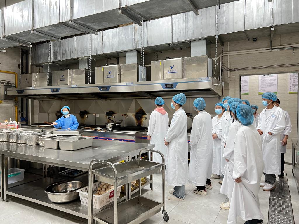 学生代表在食堂工作人员的引导下,进入食堂后厨各区域,参观了后厨操作间、冷冻库房、食品原料库房、食品清洗消毒区、食品加工及烹饪区等场所,了解了学院食堂在食品原料采购、储存、生产、加工等方面的安全管理制度和监控措施。