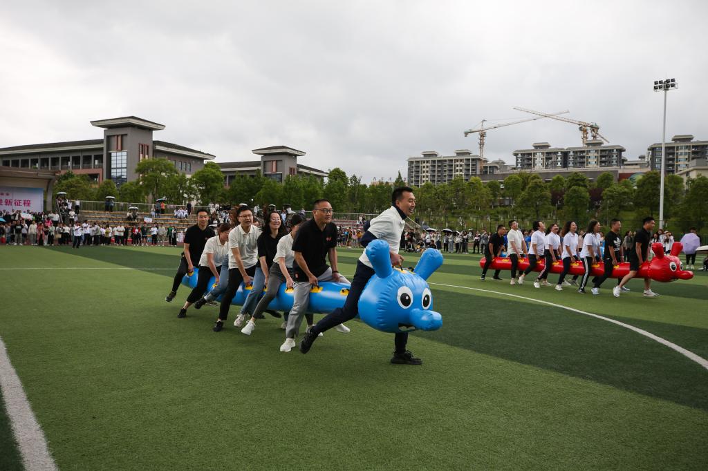 运动会在雄壮的国歌声中拉开帷幕。工会主席夏安琼致辞后,李春模宣布运动会开幕,话音刚落,现场彩球翩飞、礼乐齐鸣。一段活力四射的开场舞后,12支参赛队伍各自就位,开始了毛毛虫竞速、十人九足、时钟跑、搭桥过河、鼓动人心、趣味气排球等6个集体项目的竞赛角逐。