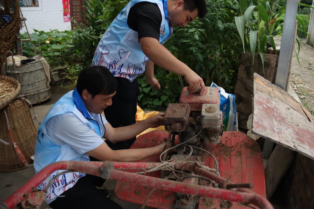 天全县仁义镇小落村传来一阵阵机器轰鸣声,是智能制造与信息工程学院“智慧小匠”科创志愿服务小队在帮助村民修理农用器械,在围观村民的一阵阵叫好声中,拖拉机的发动机轰隆隆的转动起来。帮助村民修理农具只是“智慧小匠”们的任务之一,他们还向村民宣传防诈骗知识,通过讲述诈骗案例的形式向村民普及防诈技巧,得到了广大村民的认同和支持。
