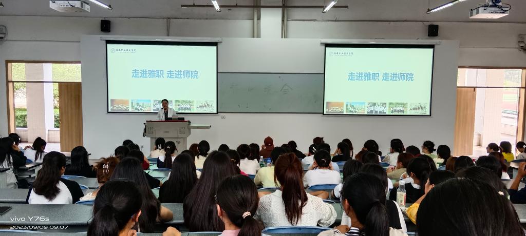 9月9日,学前教育、早期教育、特殊教育专业认知教育分批次举行。师范学院院长冯良亮向新生介绍了学校和师范学院的建设发展情况,围绕如何迈上大学生活的第一步,如何进行角色定位、角色认同,以及师范生教师职业基本能力具备等方面进行了教育引导。师范学院党总支副书记张莹为全体新生介绍了新生入学相关安排、学生管理工作等。学前教育与特殊教育教研室主任胡晓伶、特殊教育专业负责人蔡小龙分别围绕2023级人才培养方案,就培养目标、毕业要求、课程体系、培养特色、实训条件以及行业发展、就业前景、职业生涯发展路径等进行了讲解。