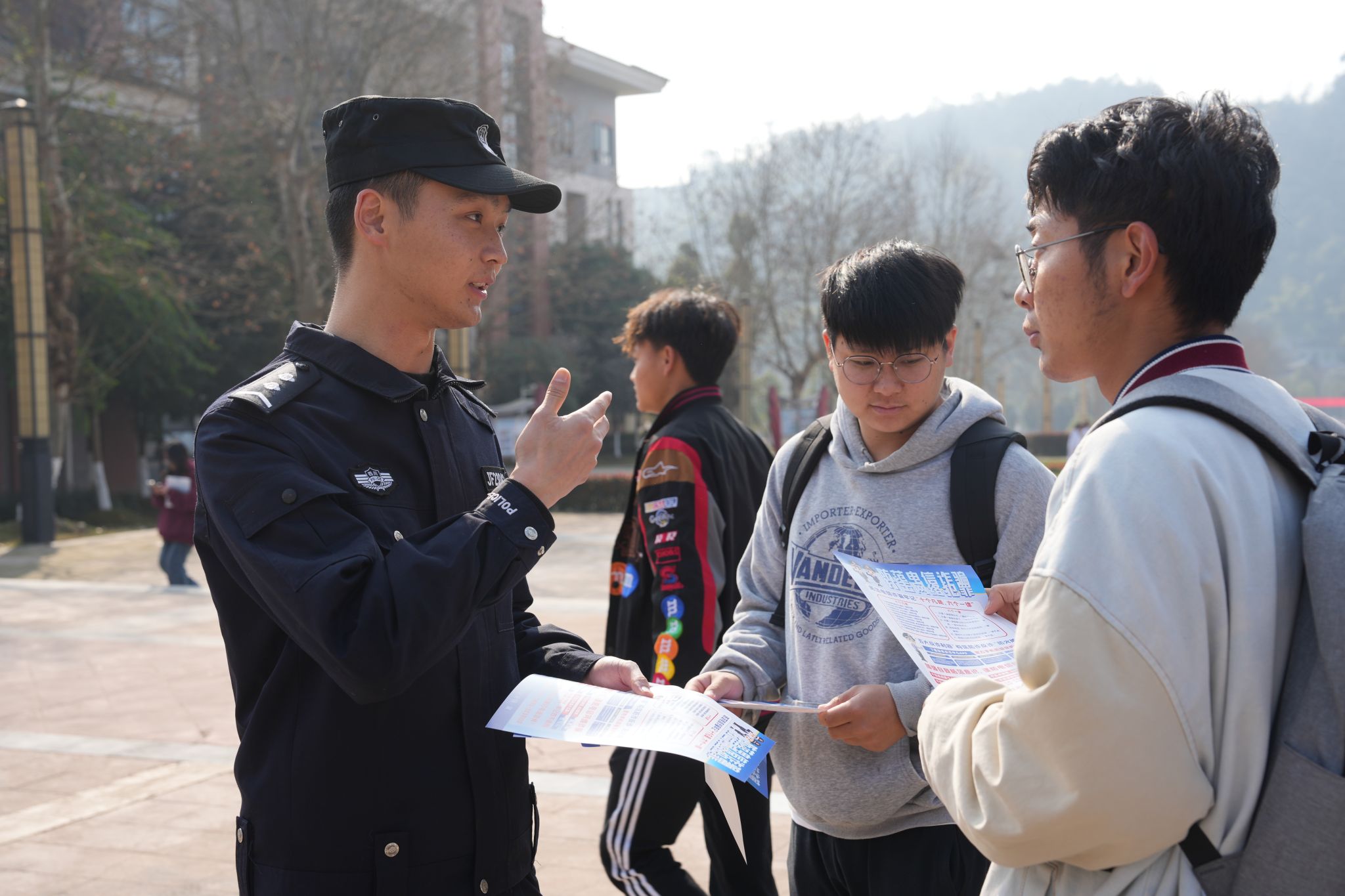 为进一步筑牢校园安全防线,提升师生对电信网络诈骗犯罪的识别和应对能力,深化禁毒教育,增强对网络谣言抵制的主动性,3月15日,学院联合雅安市公安局经济开发区分局,在经开区校区开展反诈骗、禁毒、抵制网络谣言宣传活动。