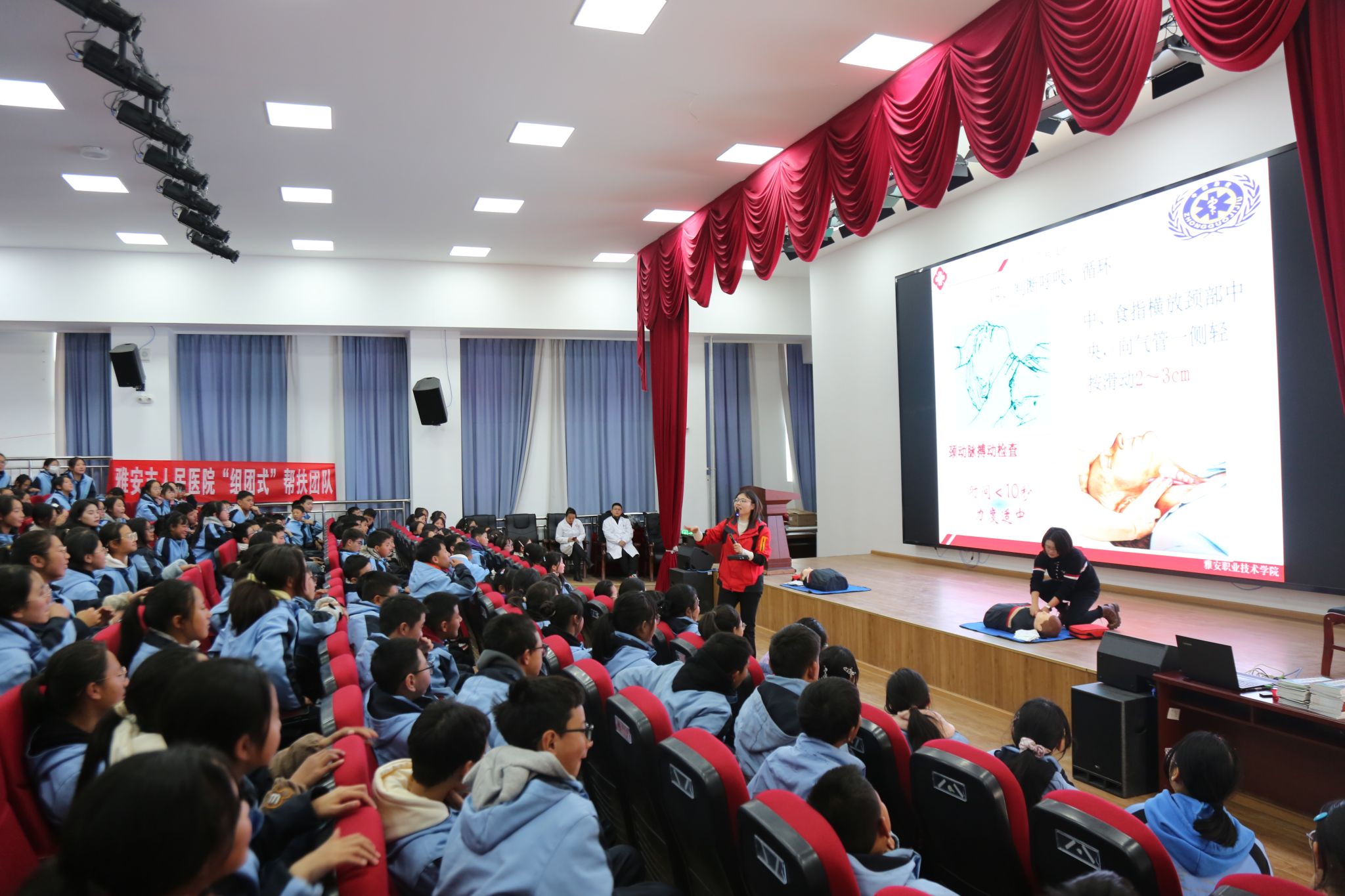 为普及防灾减灾及应急救护知识,弘扬和传播“人道、博爱、奉献”红十字精神,3月13日至14日,学院联合康定市教育与体育局、康定市红十字会、康定市人民医院在甘孜州康定市第二中学、康定市第三中学,开展了“学习急救知识、守护生命安全”的主题活动,护理学院4名教师担任此次培训讲师,并进行现场指导,近700名师生参加了本次活动。