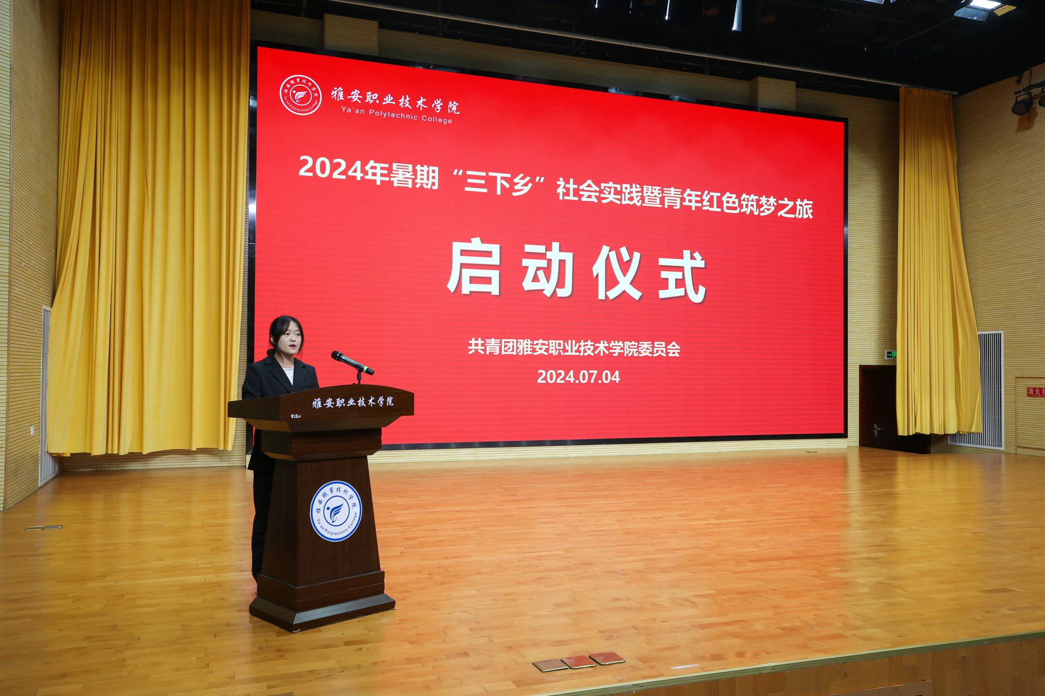 为进一步引导广大青年学生在社会课堂中受教育、长才干、作贡献,7月4日,学校2024年暑期“三下乡”社会实践暨青年红色筑梦之旅启动仪式在经开区校区聚雅厅举行。学校党委常委、副校长陈冬冬出席启动仪式并讲话,马克思主义学院、宣传统战部、学生处、产教融合处、团委相关负责人,学校暑期三下乡社会实践团队和青年红色筑梦之旅团队师生代表、青马工程学员代表等300余人参加活动。