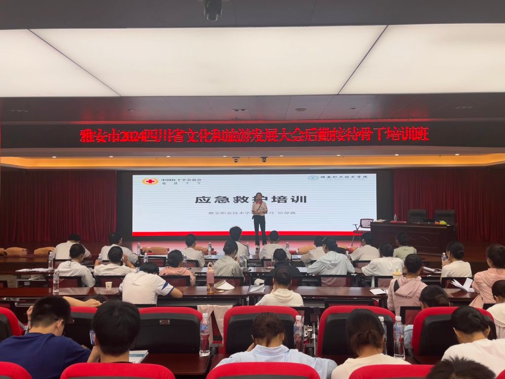8月29日上午,学校护理学院应急救护培训师资黄丹、伍静薇受雅安市红十字会邀请,走进2024四川省文化和旅游发展大会后勤接待骨干培训班,进行应急救护知识培训,来自全市各县(区)、市级各单位以及高校的300余名旅发大会后勤接待骨干参加培训。