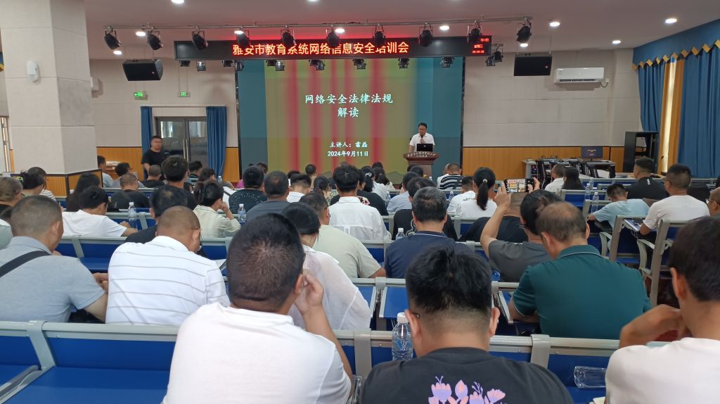 9月11日,由雅安市教育局主办的全市教育系统网络安全宣传周活动——教育系统网络安全培训会在雨城区第九小学举办。学校马克思主义学院教师雷磊受邀做了“网络安全法律法规解读”专题讲座。
