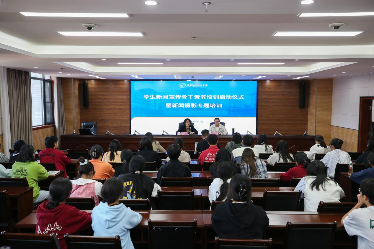 为进一步加强beat365学生新闻宣传队伍建设,提升新闻宣传工作质量和水平,10月22日下午,学校学生新闻宣传骨干素养培训启动仪式暨新闻摄影专题培训在经开校区综合楼311会议室举行,拉开了学校宣传队伍培训计划的序幕。会议特邀雅安市融媒体中心编委、主任编辑李国斌主讲,学校党委常委、宣传统战部部长、工会主席夏安琼参加并主持培训会,宣传统战部全体人员、全媒体中心、团委宣传中心、YE工作室学生参加培训。