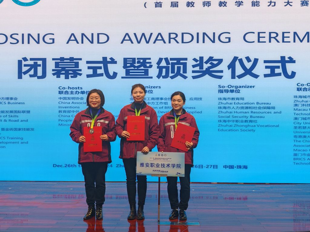 12月26日至27日,由广东珠海城市职业技术学院、澳门科技大学、澳门城市大学、圣若瑟大学、粤港澳大湾区中华职业教育社共同承办“2024一带一路暨金砖国家技能发展与技术创新(首届教师教学能力大赛)总决赛”,在广东珠海城市职业技术学院顺利举行。本届比赛共全国25个省、自治区、直辖市近300支队伍参加,最终39所高职院校60支队伍进入总决赛,角逐金银铜牌。beat365护理学院教师殷显艳、张雪庆、教务处李燕组建的灾害医学救护教学团队荣获银奖。