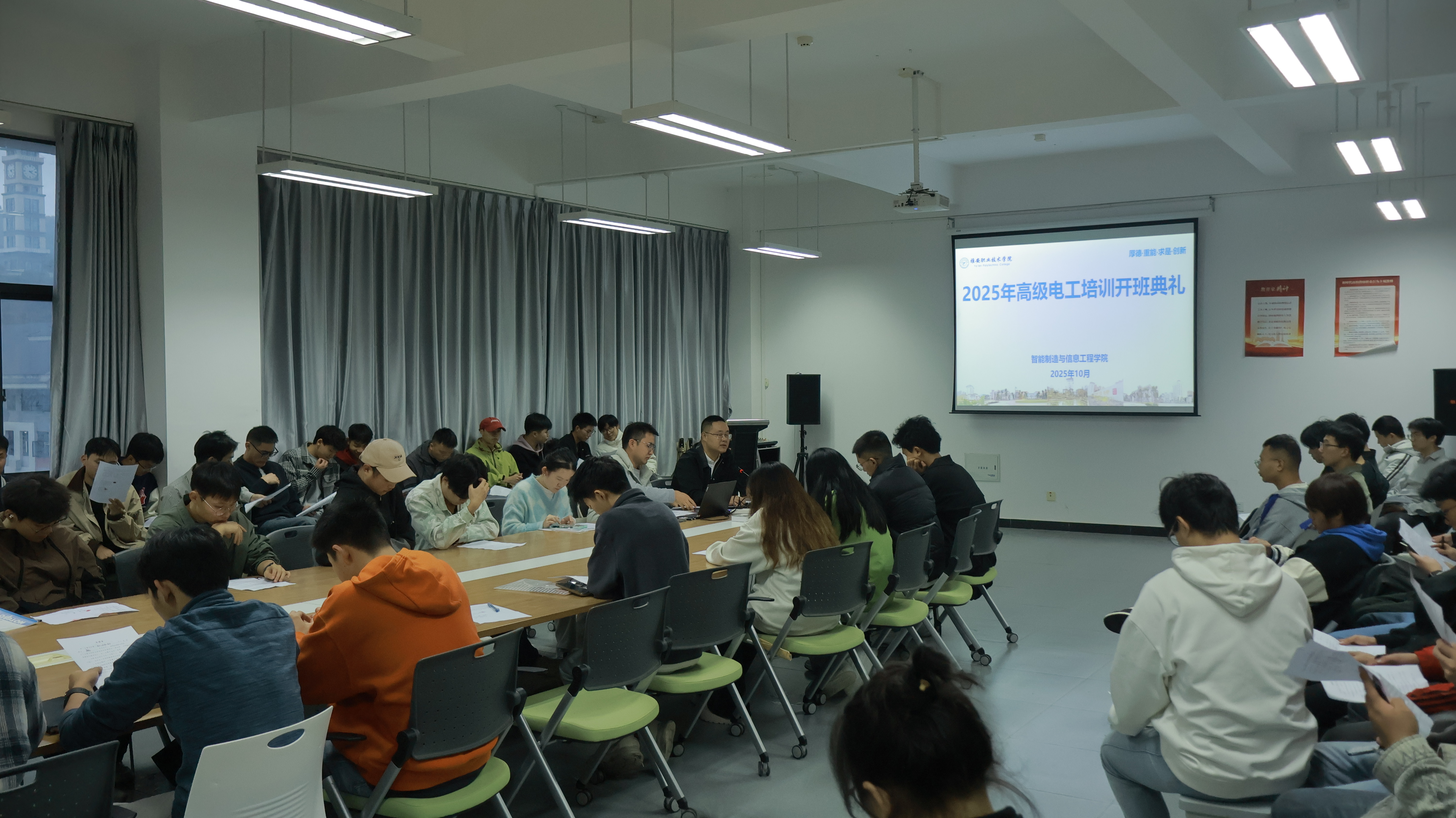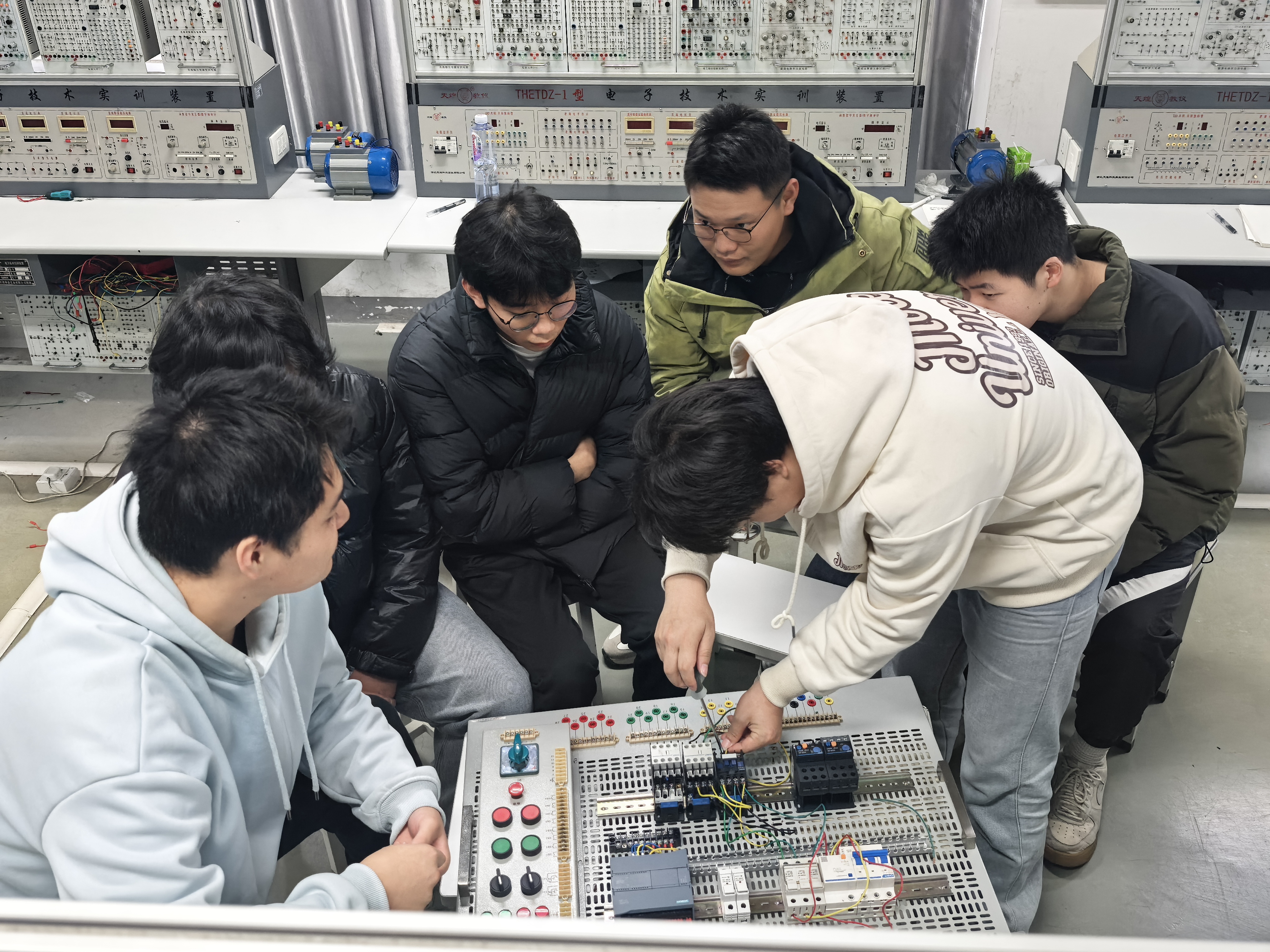 培训紧密围绕实习岗位的技术需求,设置了电气控制、PLC编程、智能设备运维等核心课程,着力解决学生在实际工作中遇到的技术瓶颈。为确保培训质量,继续教育与国际交流处统筹协调,聘请校内外优秀师资,利用课余时间开展高强度“理论+实操”一体化教学,全面提升学生的综合职业能力。