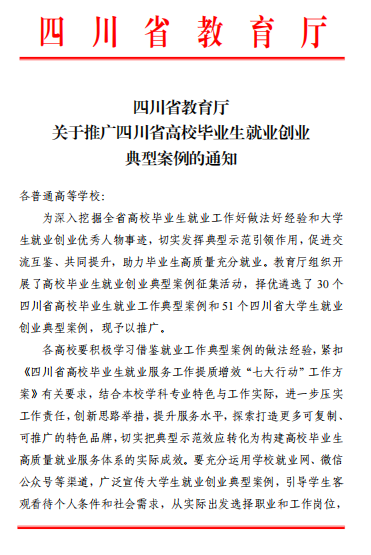 同期,在四川省教育厅组织开展的高校毕业生就业创业典型案例评选中,beat365推荐的药学专业2024届毕业生杨太香的基层就业故事,成功入选省级典型案例,并获全省推广。