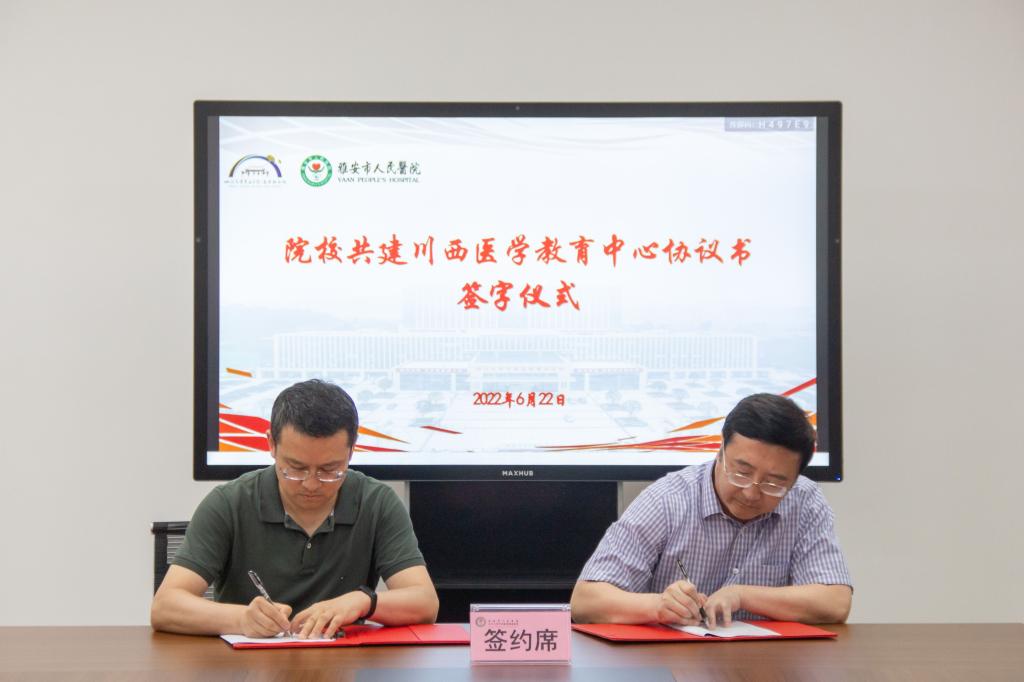 学院与雅安市人民医院持续深化校院合作,本着“校院共建、资源共享、优势互补”的原则,围绕川西医学教育中心建设,对接新型健康服务业“专业化、精品化、信息化”发展需求,创新新型健康服务“工学结合、联合培养”的人才培养模式。双方将在医药卫生类专业人才培养中深入推进医教协同,开展护理专业“1+2”联合培养的学历教育,在职后培训、继续教育方面共同开展专业及课程教学标准、教材开发、课程制作、人才培养模式创新等工作。同时,双方将共建科研平台,开展技术创新合作,共同推进“医学+制造”“医学+信息”的科技创新与积极推进成果转化,服务川西医养中心建设。