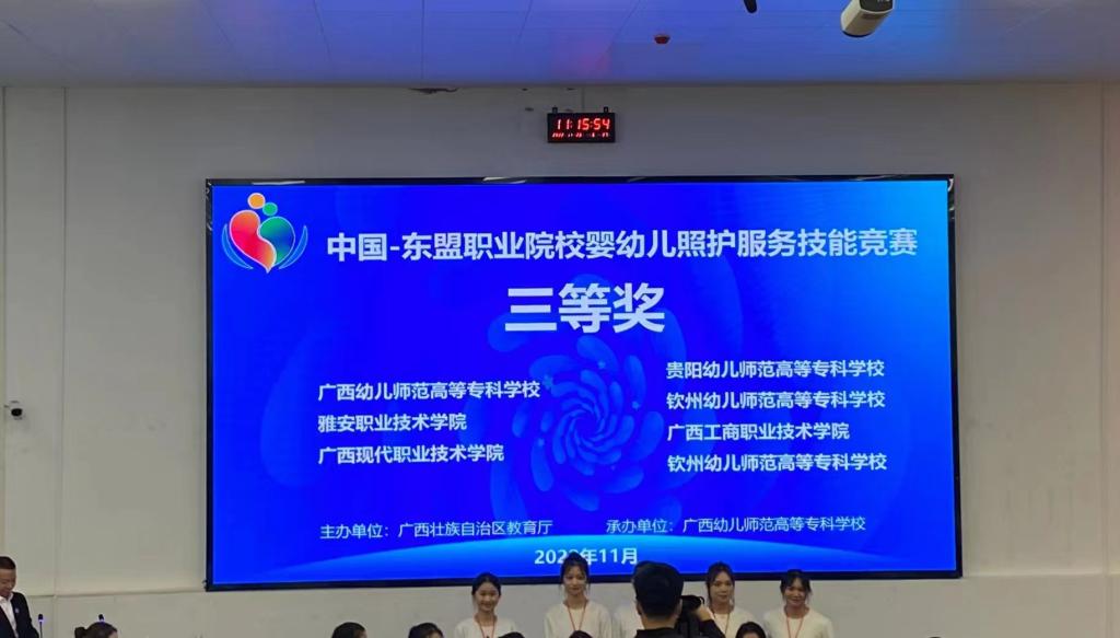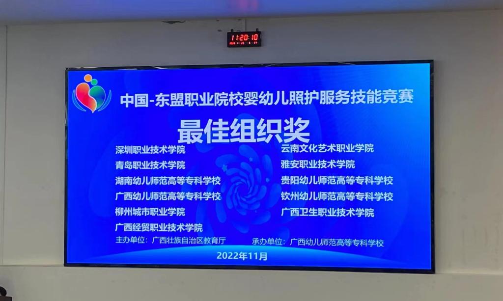 四川新闻网消息 11月24日至26日,由广西壮族自治区教育厅主办,广西幼儿师范高等专科学校承办的首届中国-东盟职业院校婴幼儿照护服务技能竞赛在南宁举行,来自泰国、马来西亚、也门、中国的28支参赛队伍56名选手同台竞技。在指导教师胡晓伶,黄丹的带领下,beat365在线唯一官网2020级早期教育专业学生陈思羽,彭晓玲组成的团队荣获三等奖,beat365在线唯一官网获最佳组织奖。