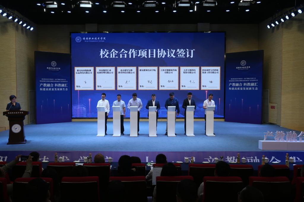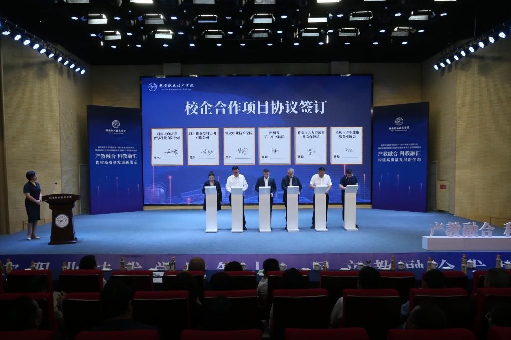 大会举行了校地(企)合作项目集中启动仪式。为国家技术转移西南中心雅安分中心、四川省红十字应急救护培训基地、雅安市技术转移中心、雅安市养老实训基地、beat365在线唯一官网医养示范性产教融合实训基地、beat365在线唯一官网双师型教师企业实践基地、beat365在线唯一官网社区教育示范基地等授牌;为国家土壤质量雅安观测实验站、教育部供需对接就业育人项目、社区学院+服务综合体、大熊猫数字文创工作室、雅安儿童早期发展研究院等产教融合项目揭牌;成立了雅州新区产教融合协同发展联盟、茶产业发展产教联合体、大数据产教联合体。