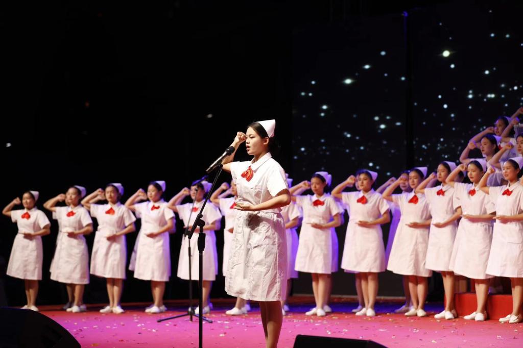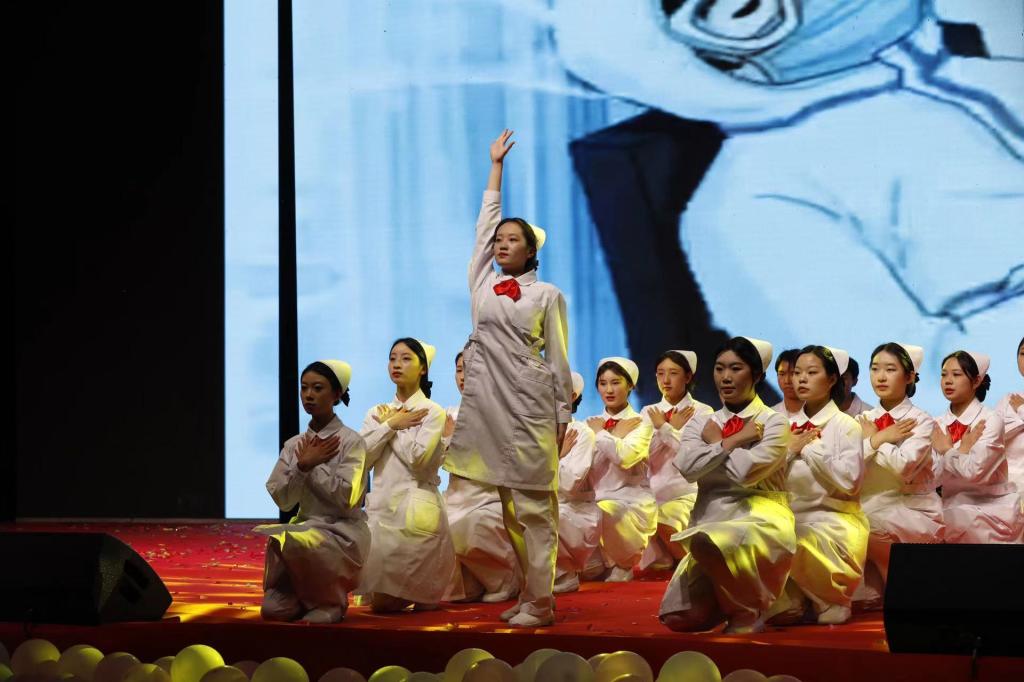 雅职学子满怀赤诚、追梦前行,他们有理想、敢担当、能吃苦、肯奋斗,他们像璀璨星辰,熠熠生辉,由雅职学子共同演唱歌曲串烧《向星光熠熠》一下让现场沸腾起来;白衣天使是逆风奔跑的人,从晨曦到深夜,从忙碌到寂静,她们用陪伴提升生命的温度,用爱弥合伤口的裂痕,情景剧《赞白衣事迹,承天使精神》把白衣天使平凡的工作呈现在观众面前;勇敢执着是我们不变的信念,坚韧顽强是我们对生活的态度,我们即将启程去面临无限的未来,来书写自己无悔的青春,即将毕业的雅职学子合唱《启程》,用歌声歌颂人类护理事业先驱们无私奉献的伟大精神和对南丁格尔无比崇敬的心情……晚会现场,同学们表演的一个又一个精彩节目,将现场激情点燃。
