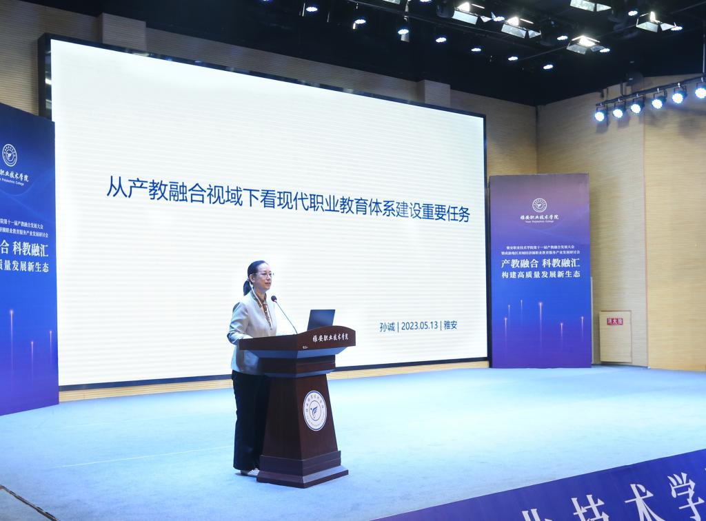 会上,中国教育科学研究院职业与继续教育研究所原所长、研究员孙诚作了《从产教融合视域下看现代职业教育体系建设重要任务》主旨报告,对中共中央办公厅、国务院办公厅《关于深化现代职业教育体系建设改革的意见》进行系统深入解读,梳理了职业教育战略任务、发展路径,剖析了职业教育内涵式发展的改革重任。
